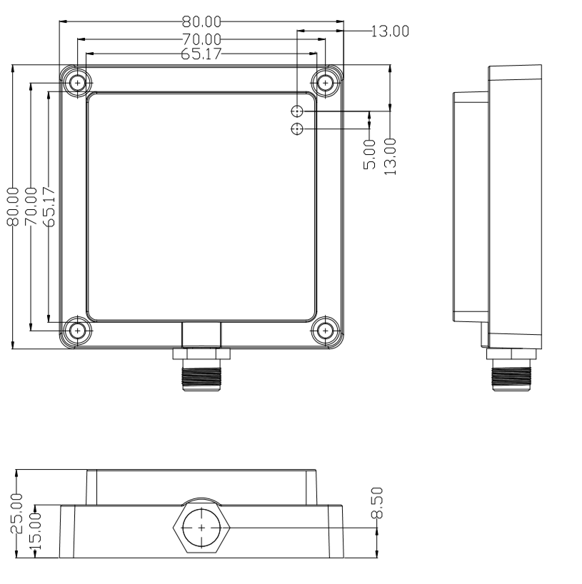 物理参数 | 外形尺寸 | 80×80×25mm(不包括螺纹接头) |