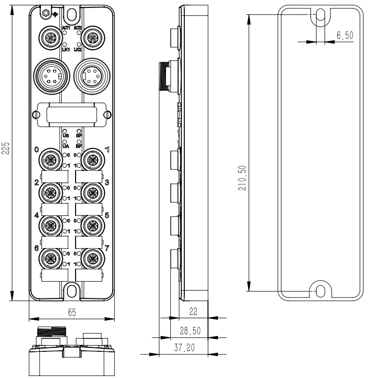 未使用的端口必须安装盖帽,以确保IP 67保护等级