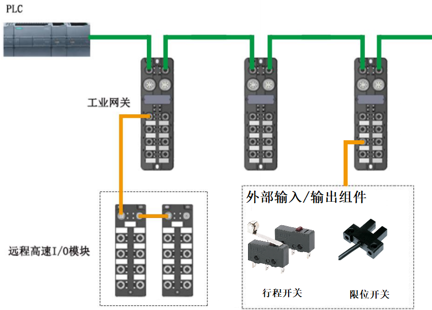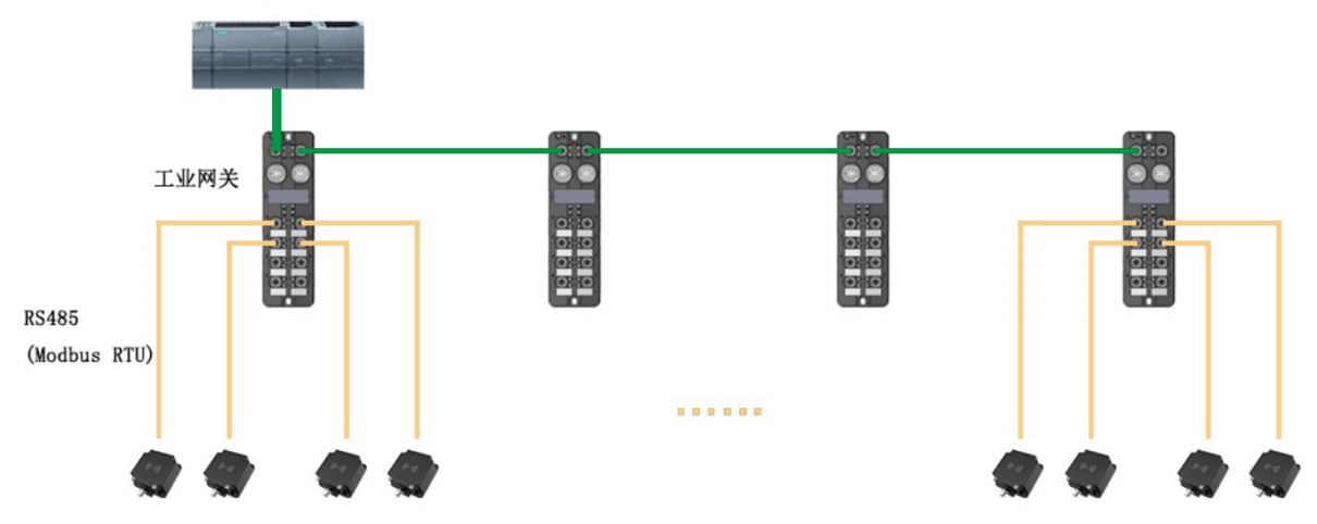 网关RS485端口(使能)定时(时间可配,默认500ms)读取从设备的寄存器信息(需要提前配置从站工作的寄存器地址和数目),将获取到的信息通过MODBUS TCP端口上传给PLC输入模块(过程映像输入区)